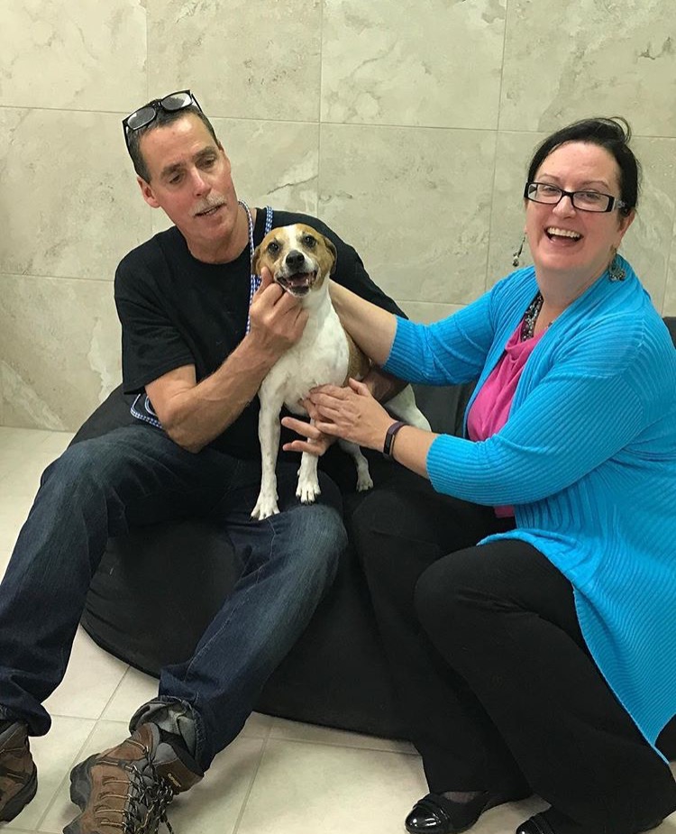 Hounds Town Commack Rd. owners Teri and Thomas recently partnered with Jacks Galore–a Massachusetts-based Jack Russell rescue–to provide a temporary foster home for a dog named Zach. “Zach’s human mom went into hospice,” explains Teri, “and his family didn’t want him and her two other dogs.”