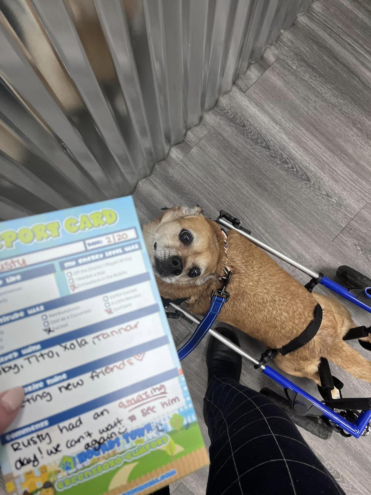 In another heartening tale, Hounds Town Greensboro-Guilford demonstrated one of our core values—embracing every dog, regardless of their circumstances. Rusty, a tiny wheelchair-bound speedster, faced rejection from other doggy daycares in the area due to his impairment. However, at Hounds Town Greensboro, Rusty found a welcoming home. Chris and the team welcomed Rusty into the pack, showcasing that our commitment goes beyond breed, age, or the number of legs a dog has.