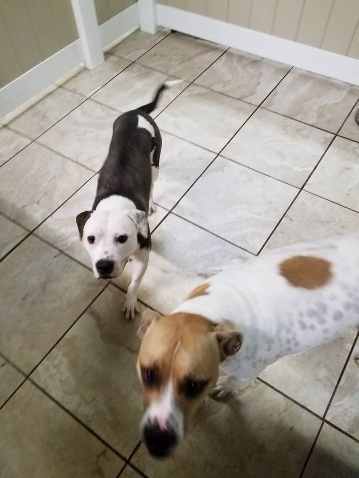 Today, Lucy enjoys playing with her BFF and boyfriend Harley–a doggie daycare customer. “It’s cute to watch them play and to watch Lucy interact with other dogs and wag her tail is heartwarming, given her past,” said Teri.