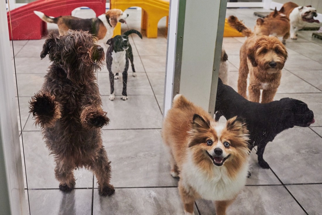 - 8 a.m. Time to Play – Our Townies spend the entire day in our interactive playrooms with other pups of similar size and personality. Just like the natural-pack structure animals instinctively know, our dogs rest when they need to during the day. Throughout the day, our staff will introduce the pups to new friends while they enjoy indoor and outdoor play rooms.